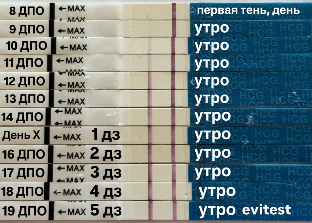 Динамику отслеживала тестами мамачек. Упаковка подошла к концу, поэтому на днях купила Evitest, чтобы уже до 20 ДПО добить и успокоиться (сегодня 20 ДПО как раз, в динамику еще не успела добавить)