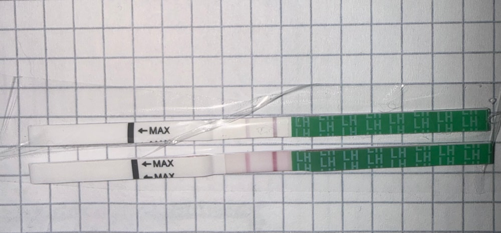 Вверху вчерашний вечерний тест, внизу сегодняшний утренний. Я знаю как выглядят положительные тесты на овуляцию