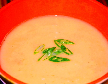 вспышка цвет исказила. суп немного зеленее и тарелка не такая яркая,а персиковая)