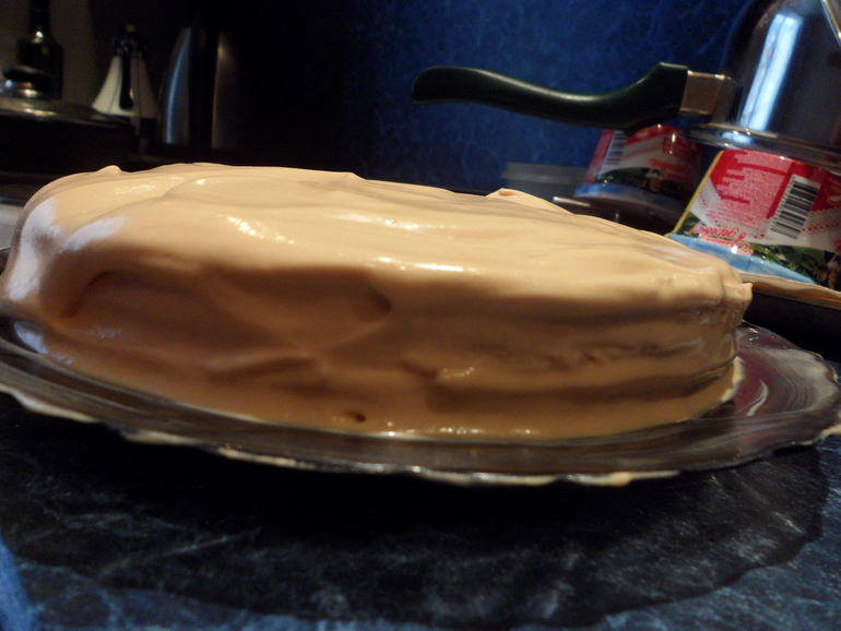 Так же выложить все коржи, каждый раз смазывая кремом.