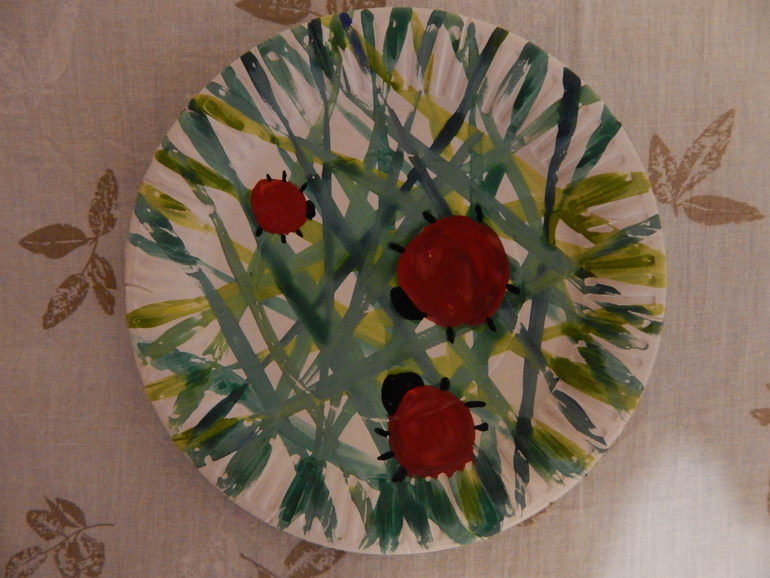 15 занятие. Рисуем на тарелочке «Божья коровка на поляне»
