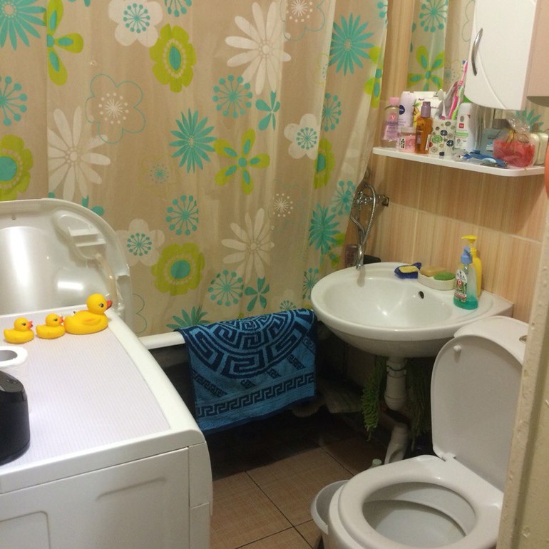 Я опять с опозданием, но зато дела все переделала, полотенчики поменяла и шторку постирала! Сантехника всегда в порядке.