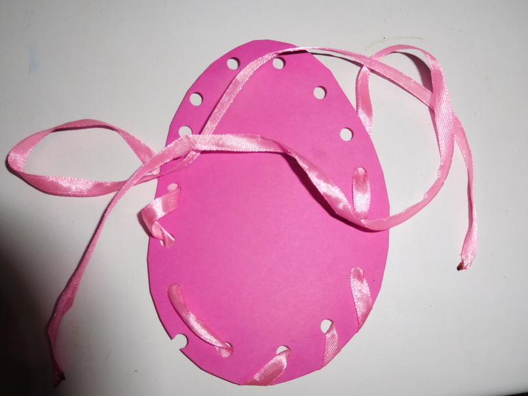 Сегодня у нас вновь простой набор для творчества: шаблон яйца из картона, дырокол и ленточки!