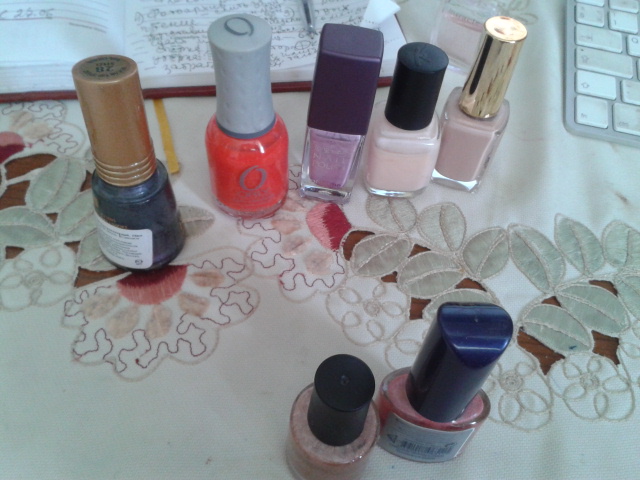 Я перебрала лаки для ногтей - 5 пойдет за этот день (отдам) плюс 2 на следующий (выкидываю)