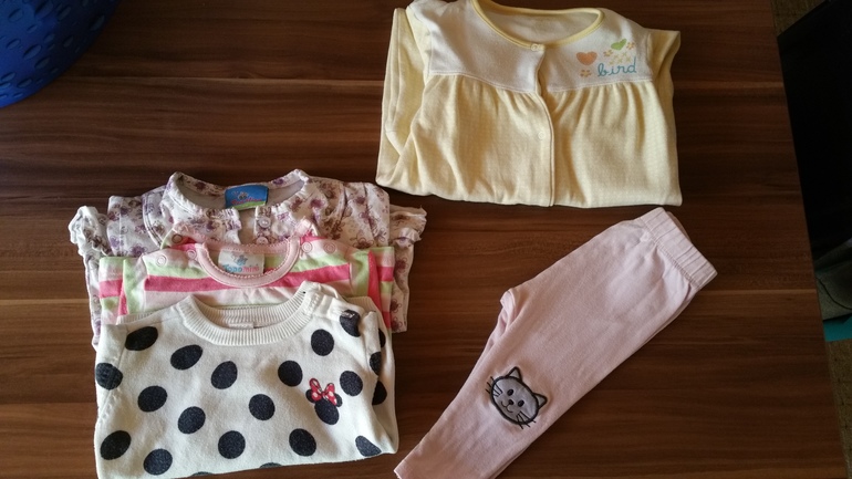 Это из стирки вчерашней. Отдам знакомой. Пижама, 3 кофточки и легенсы.