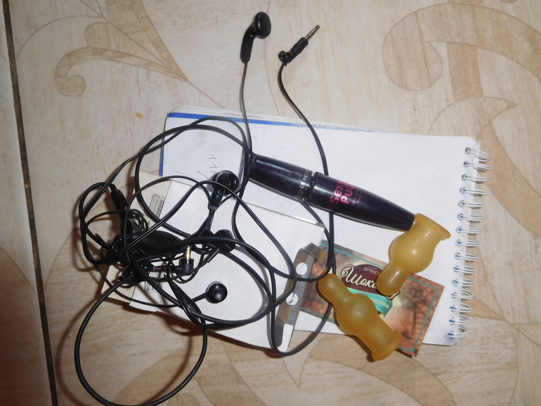 2 наушников, тушь, блокнот, календарь, визитка, 2 соски))