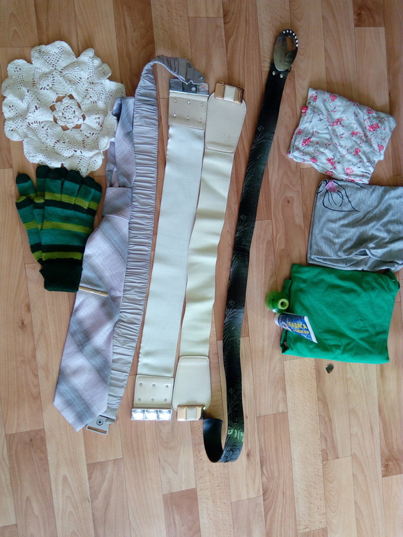 У меня на вынос ремни, старые майки, салфетка, старые перчатки-уедут к маме, крем который бестолковый, штука от фумигатора, которая валялась в шкафу и галстук. В общей сложности 12))).