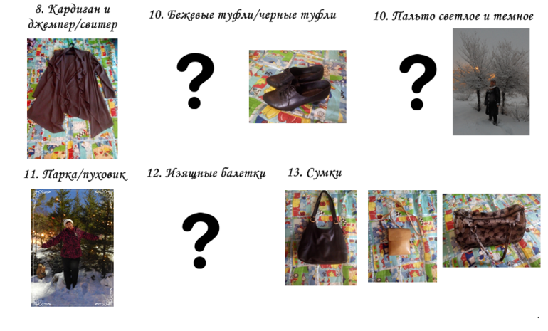 В итоге получается: где поставила вопросы, не хватает в гардеробе и нужно на это обратить внимание.