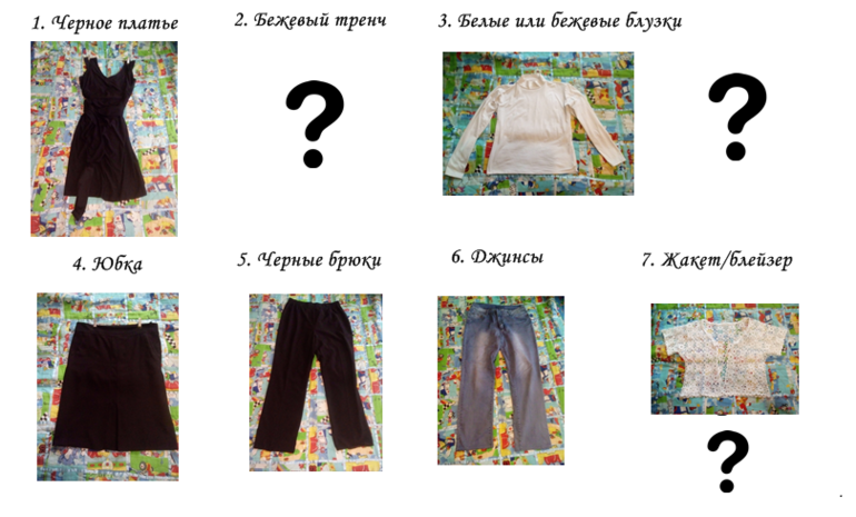 2. Составить сочетания базового гардероба, что с чем можно носить.