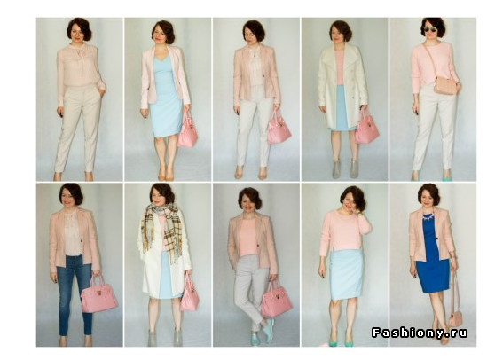 Пример: деловая капсула гардероба в пастельных тонах в стиле casual shic.