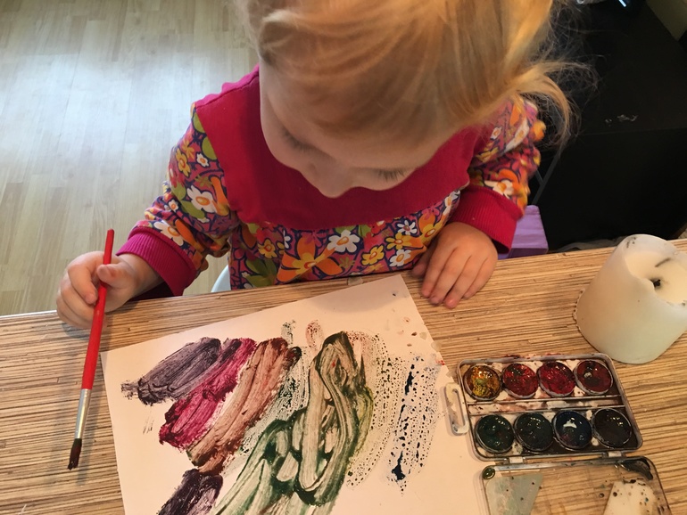 Возможно гуашь будет плохо ложиться на лист, тогда воспользуйтесь мыльной водичкой, жидким мылом или шампунем - добавьте это в гуашь, смешайте и, таким образом, покрывайте лист. У нас гуашь свежая и отлично лист покрыла и так.