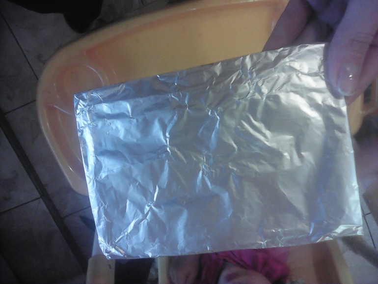 Я это задание придумала резко, посмотрев на остатки фольги от шоколадок. Вообще я сначала мысленно возмущалась, что Муж один съел 2 шоколадки, а мне досталось лишь пару мелких кусочков накануне, а затем мне захотелось применить фольгу в дело!