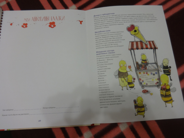 Открыв книгу здесь (на стр. 49), после неоднократного самостоятельного прочтения, моя старшая дочь сказала - "Анютины глазки для пчёл, как мороженое. У меня только один вопрос. Где они берут вафельные стаканчики?"
