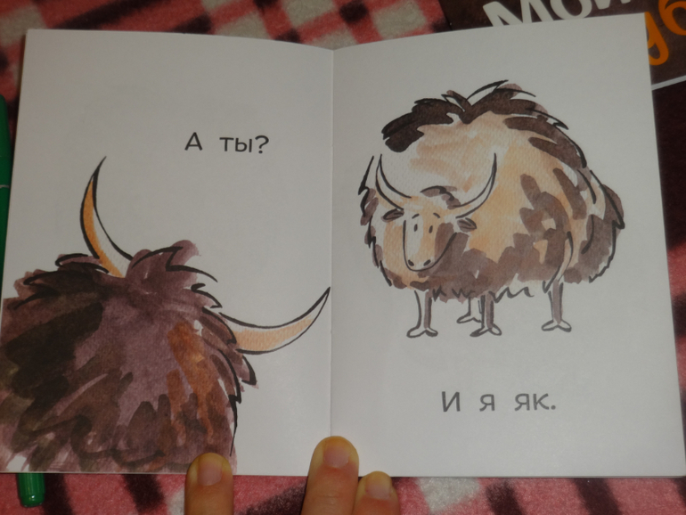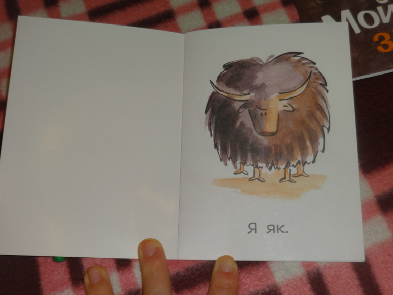 Здесь все упрощено до невозможности. Картинка простая, несколько простых слов, отражающие смысл. Малыш в состоянии запомнить и повторить. Устать за время "чтения" невозможно, книжка очень быстро заканчивается