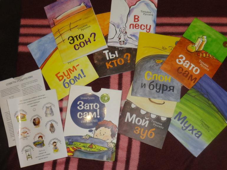 Набор из 8 книжек, которые хранятся в коробочке. Там же прилагается инструкция (как и в каком порядке читать книги - от простой к сложной) и наклейки, как награда за каждую самостоятельнопрочитанную книгу.