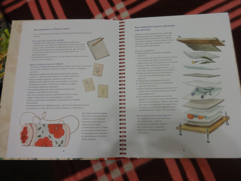 Расписаны практические советы и правила сбора растений для гербария, описано как правильно засушить растения под прессом.