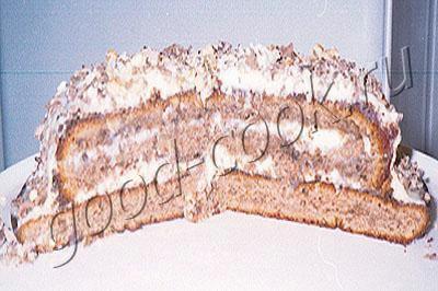 В форме диаметром 20~23см испечь корж из 1/3 части теста (при выпекании в формах большего диаметра количество продуктов увеличить в 1,5~2 раза).