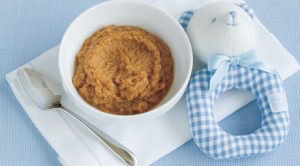 Добавить необходимое количество бульона либо кипяченой воды, чтобы пюре было не слишком густым.