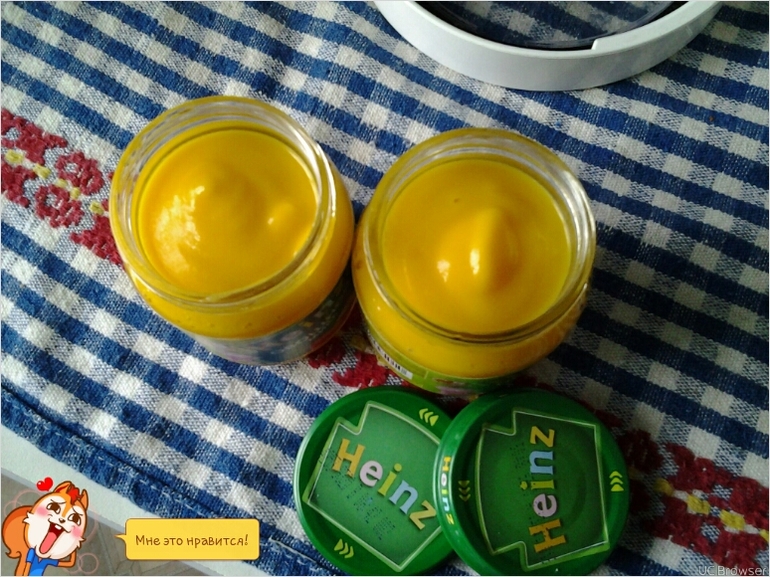 Вы сами готовили пюре? Баночки от пюрешек Хайнц:) Кстати, эта марка мне ближе всего, потому что малыш к аллергии склонен и не все подходит нам, даже домашние пюрешки. А у вас аппетитно все выглядит! Здорово! Думаю что малыш оценит? Я вот тоже делала бы сама пюре, но готовые баночные хайнц больше всего подходят и по вкусу малышу, а главное по отсутствию аллергии.