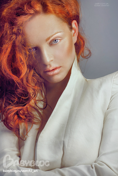ИМХО- без одежды было бы еще лучше..... немножко блузка тормозит... такая девушка-огонь,...мм...не знаю, как объяснить, но воланы и застегнутость, мне кажется, лишнее... может, конечно, идея такая- на контрасте, но более смелая одежда или вообще отстутсвие таковой можно бы попробовать...