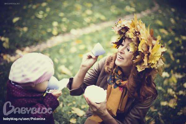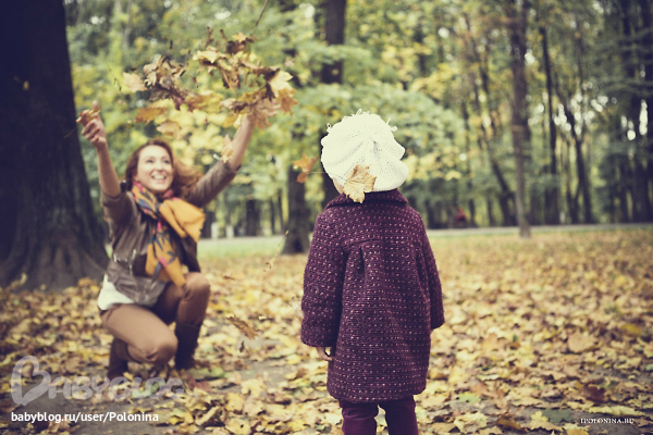 Светящаяся счастьем мама Светлана и маленькая Виола, солнечный сентябрьский день, парк с вековыми деревьями, запахи опавшей листвы и чудесное настроение!