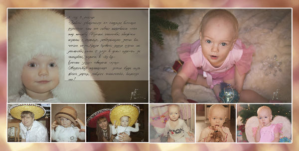 Оля, рецепт незамысловатый: открываешь фотошоп, выбираешь фото и распологаешь их по своему усмотрению :))) Я кстати, и на заказ фотокниги пеку :))))))