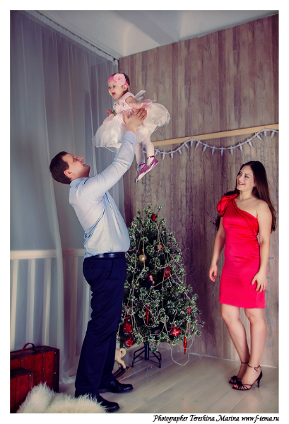 Очень приятная и красивая семья снималась у меня в декабре. Наташа невероятно красивая и милая. Дашенька — смешная и улыбчивая :-) Очень долго выбирали с ребятами студию, посмотрели по-моему почти все возможные в Москве, в итоге остановились на этой. Там я снимала первый раз, но мне понравилось. просторные помещения, никакого ощущения тесноты, множество локаций, достаточное количество мебели, но не перегруз.