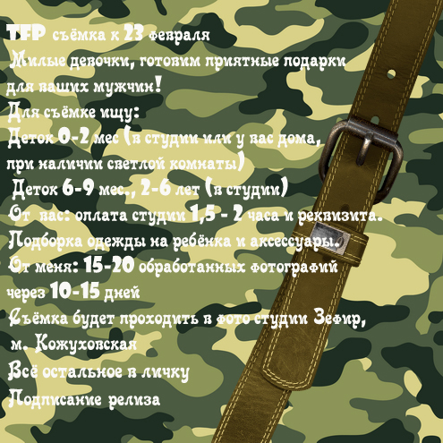 Скажите вы можете нас поснимать на следующих выходных мою доченька 1 и 7 месяцев. В какой-нибудь интересной студии и если можно несколько фото со мной и мужем?