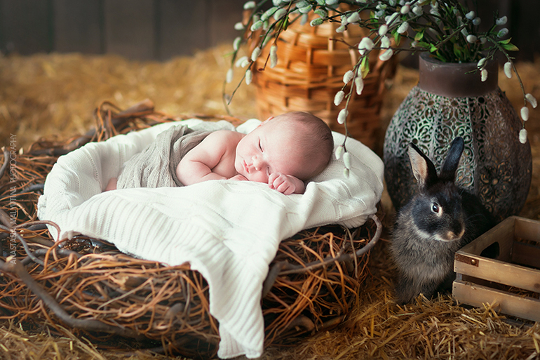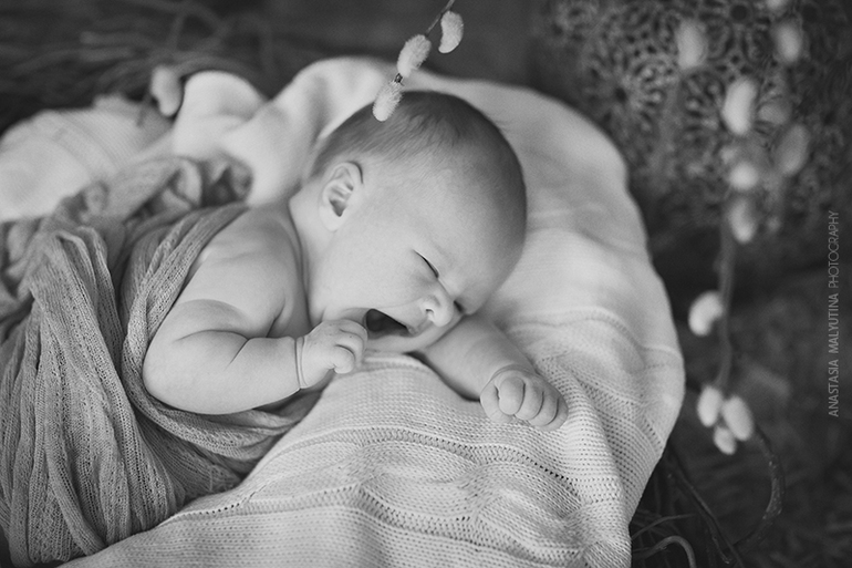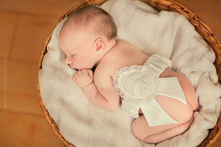 И кто бы мог подумать, что обычная съемка новорожденной малышки с пледами, корзинками и бантами на голову (как планировалось) вдруг выльется в такую неожиданную идею=)