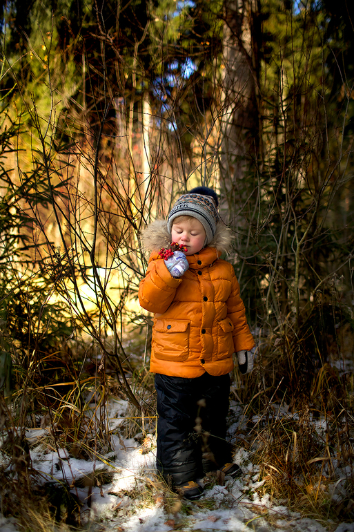 Да, красноту с носика точно нужно убрать.Рябину ест почему?....Да потому что он всю съемку действительно ел рябину, пока две ветки не закончились:) По второй-согласна с Вами...просто мне хотелось показать маленького ребенка в пустом, огромном лесу. Понимаю, что малыш должен быть повернут лицом в другую сторону, но это единственный кадр где я смогла его поймать, я ведь еще только учусь.( хотя это не оправдание) Спасибо за подсказки.