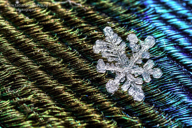 Мех от своего зимнего пуховика отстегнула и использовала его как ловушку для снежинок. )) На двух фото в конце перо павлина.