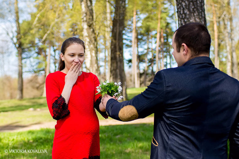 17 кадр. Блииин, ну канеш, девушка тааак удивилась букетику! Зачем эта наигранность? Ну вот правда, неужто было бы хуже, если б она просто радостно улыбалась в ответ на этот жест любимого мужчины? Ещё забавней вот что: она удивлена букету, но двумя кадрами выше она его уже держит в руке. Ну так, бывает, чЁ: подержала цветочки, не заметив этого, а потом мужчина их забрал и заново подарил. В серию когда собираете фото, хоть ляпы не допускайте :-)
