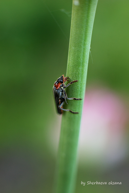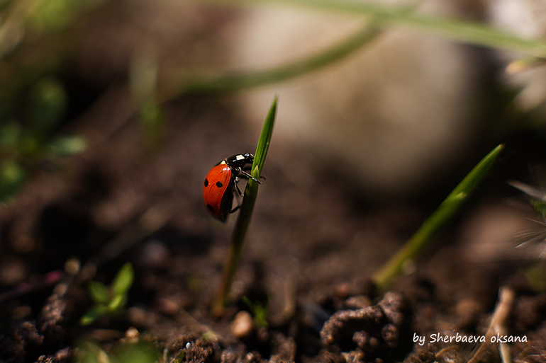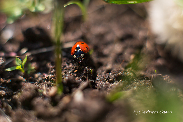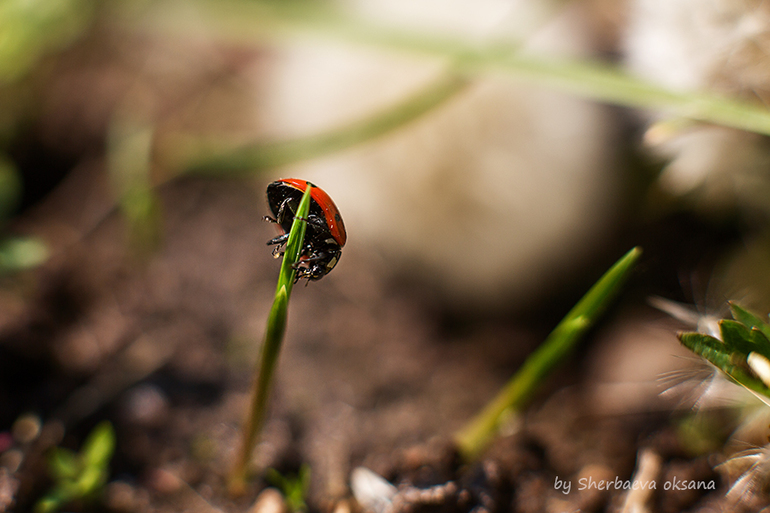 Божья коровка ползала по моим гладиолусам. Вниз-вверх.