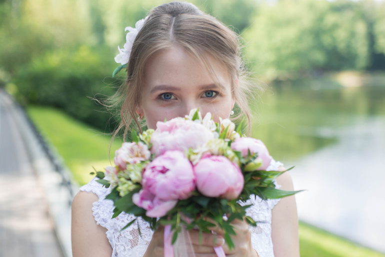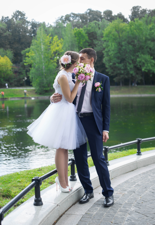 Приятная съемка. Портреты невесты можно было снять чуть сверху, встав на лавочку например, тогда ее синие глаза раскрылись бы во всей своей красоте.)