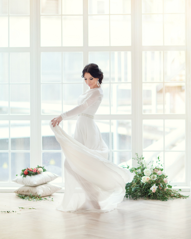 Спасибо! Нет, серое платье мы брали под проект. А белое - девушка брала у Юдашкина :-)