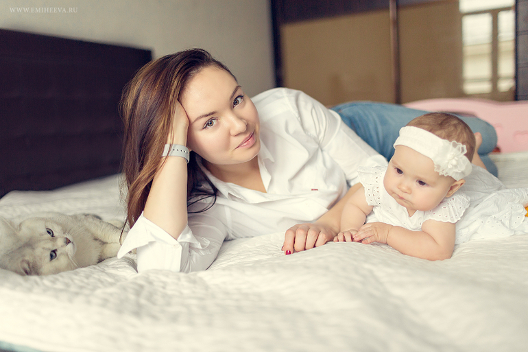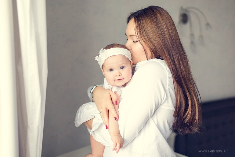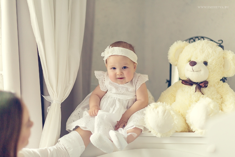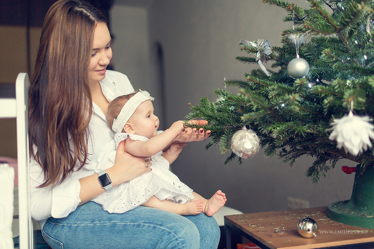 На кровати хорошо, у мамы на ручках хорошо, с елочкой хорошо, но вот фото ребенка на комоде мне непонятно.