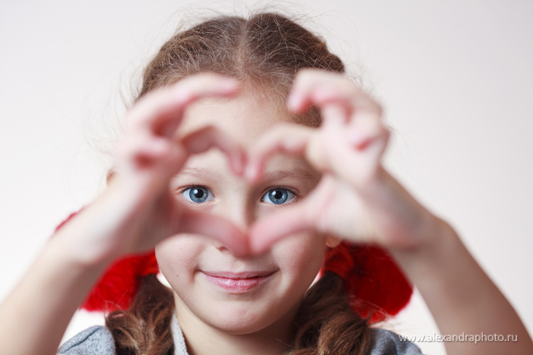 Кстати, знаете как определить, с каким светом была снята фотография? Увеличьте фото и посмотрите на отражение в глазах (в моей серии лучше всего видно у девочки с сердечком). Станет совершенно очевидно, что съемка была с зонтом. И еще он дает очень красивый круглый блик в глазах!