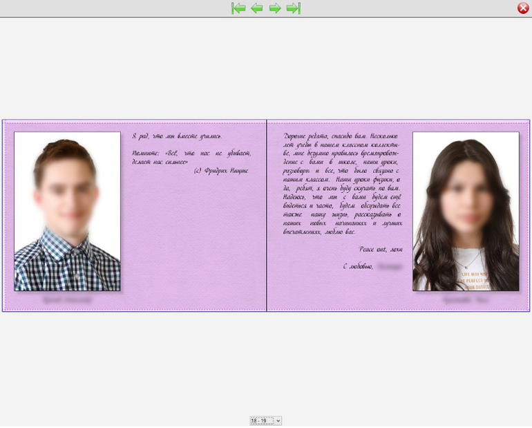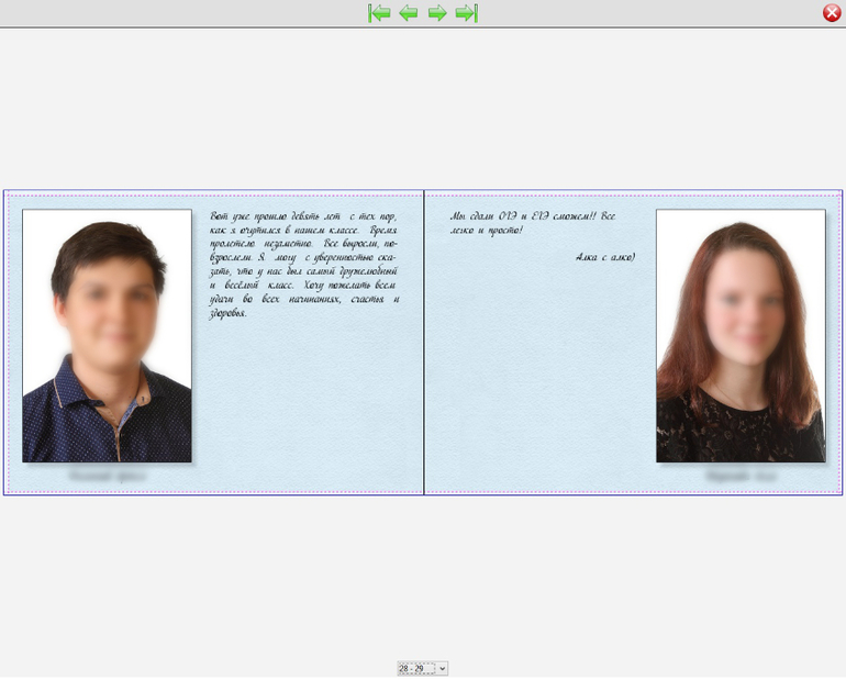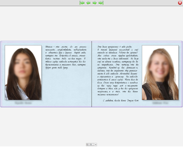 Но и добавление фото предыдущих годов, которые делались просто на память, не учитывая требования альбом, не решило в полной мере вопрос охвата всего периода учебы. И тогда возникла идея, дополнить альбом текстовой информацией. И в данном случае уже было не принципиально, чтобы ученики словами описали что было в прошедшие годы, достаточно, чтобы они изложили свои мысли о том, что дала им школа за эти годы, чему они научились и кем в результате стали.
