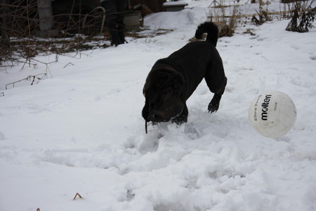 Любимая забава на даче (сегодня уже успел порвать новый мяч):