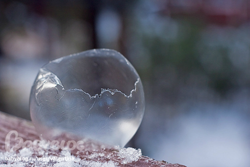 2)Watch the bubble closely and you will see ice crystals form on the bubble, until the bubble completely freezes into a bubble of ice.