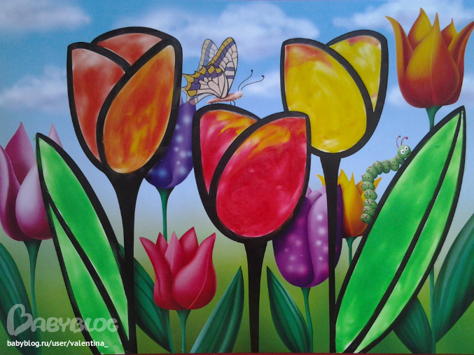 А это Соничкины тюльпаны, не правда ли красиво? К сожалению Лерины Розочки не успела сфотать, задарила бабушке тут же.