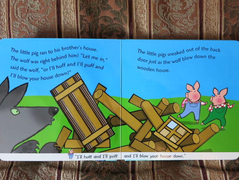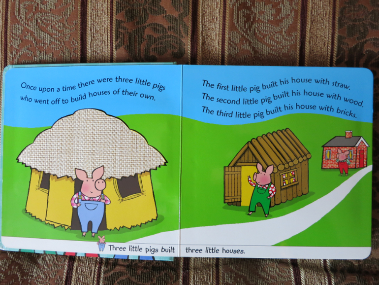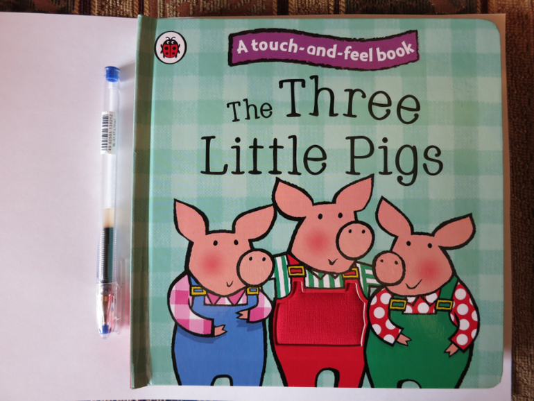 1) Про трех поросят, "Touch and Feel", иллюстрации яркие, волк правда не очень))) (стоимость 264 руб.)