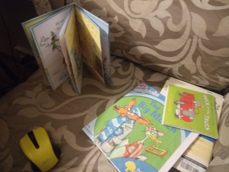 Обычная бумага А4,склеиваю между собой попарно как в книге по страницам,складываю пополам и склеиваю обычным карандашным клеем между собой,хлопотно ,но ребенок с удовольствием слушает и смотрит ,просто сложенные листы не любит читать.
