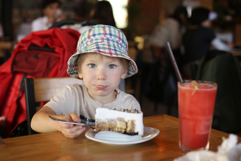 Наш опытПошёл за сладким: "I am going to the Sweetland". Любопытствую, что же там растёт. Ваня с интонацией опытного экскурсовода, соблазняет меня: «chocolate trees, cupcakes, chocolate mountains, rivers out of spaghetti, houses out of cookies, cars out of lollipops. And chocolate marshmallows ( that turned out to be mushrooms. Vanya gets the two confused). And when boys shoot pistols, they shoot with bubblegum! And at Christmas, when children wait for presents, wrapping is bubblegum. Special bubblegum, that do not stick". Ну что, соблазнил вас Ваня? Бронировать для вас место в туре по стране липких ладошек и пухлых щёчек? //////// Перевод: «Я пошёл в Страну Сладостей. Там шоколадные деревья, пирожные, шоколадные горы, реки из спагетти, дома из печенья, машины из леденцов. И шоколадное маршмеллоу. И когда мальчишки стреляют из пистолетов, они стреляют жевательной резинкой. И на Рождество, когда дети ждут подарков, вся упаковка из жвачки. Специальной жвачки, она не липнет»