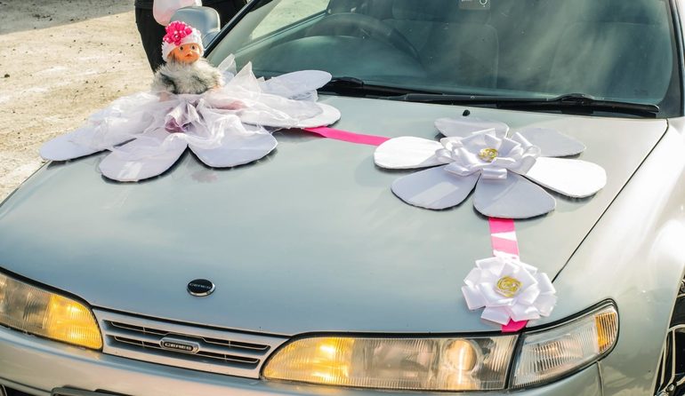 Решили для начала украсить автомобиль папы. Вот что получилось: