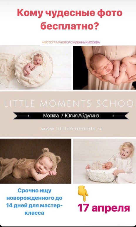 ищу модельСрочно ищу малыша в возрасте до 14 дней для проведения мастер-класса 17 апреля (или другая ближайшая дата). Группа маленькая 5 учеников. Позирую малыша только я (фотограф с большим опытом).