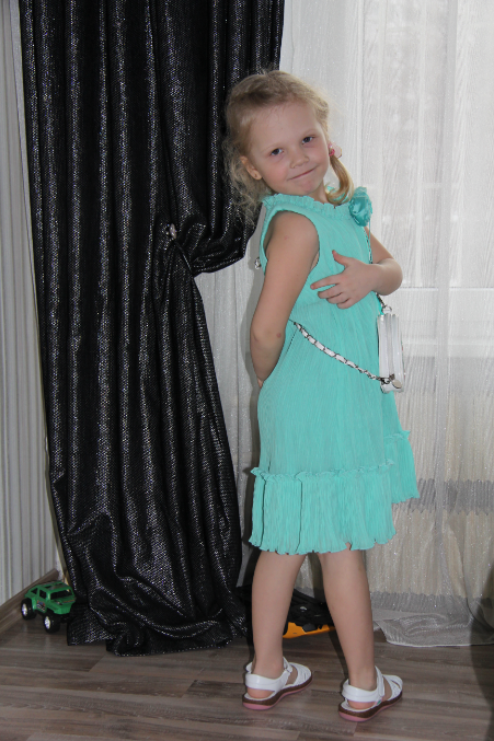 Дочка ростом 114. Платье р.122. Есть запас и это приятно. Платье такое стильное, а цвет мммм))