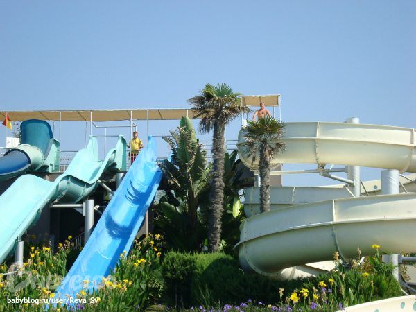 Центральный в виде капли с пальмовыми островками. Рядом два прямоугольных и детский лягушатник. Аквапарк находится недалеко от пляжа, работает по два часа два раза в день. Много разных горок. По периметру бассейнов шезлонги и зонтики. На зонтиках золотыми нитками вышита эмблема отеля. Эмблема вообще везде: на полотенцах, халатах, тапочках, салфетках, подстаканниках, пакетиках с сахаром, пепельницах и т.д. Вода в бассейнах всегда одной температуры, все очень чисто и красиво. В темное время все бассейны с голубой подсветкой. Купание в бассейнах до 20:00, но обычно после 19:00 уже никого в них не видно. Пляжные полотенца выдают перед баром Сандал. В номер их относить нет смысла – румсервис все равно полотенца уносит. Проще обменять полотенца вечером на карточки, а утром получить новые и чистые, проблем с нехваткой полотенец не было никогда. Дневная анимация сосредоточена вокруг основного бассейна, радом с баром Такатука школа дайвинга, йоги и чего-то еще. С другой стороны мостика действует школа плавания для детей Бешикташ. Есть два действующих крытых бассейна. Сбоку от основного здания отеля находится территория Lake Houses – большой бассейн, в центре несколько вилл, по периметру одно большое здание. Очень красиво. Островки с пальмами, мостики, десяток джакузи, шезлонги и зонтики. Посещать можно всем. Особенно хорошо искупаться ночью, если потихоньку J
