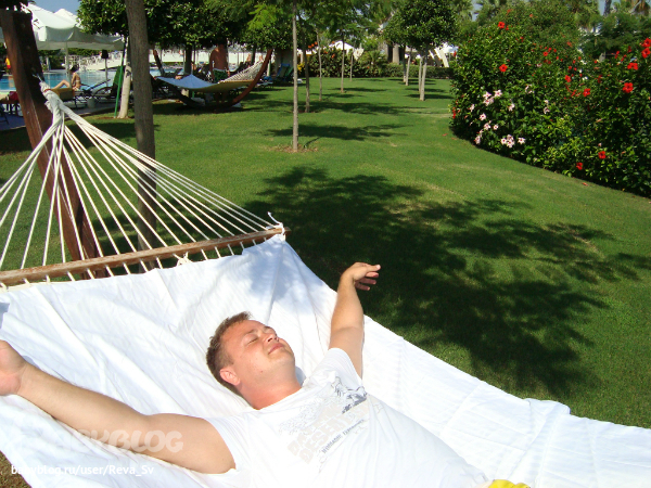 Очень большая территория по площади. Все в цветах, пальмах, соснах, кустах и водоемах. Каждая веточка, каждая травинка аккуратно подстрижены. Чистота и красота вокруг. В тени деревьев расположены мягкие кресла-мешки, большие подушки, гамаки. Гамаки застилают чистыми белыми простынями каждое утро и в обед. Есть футбольное поле, теннисный корт, да и просто погулять по парку очень приятно. Перед выходом на пляж размещены шале – индивидуальные беседки, штук двадцать, стоимостью 100$ в день, с предоставлением отдельного официанта, минибара и прочих услуг.