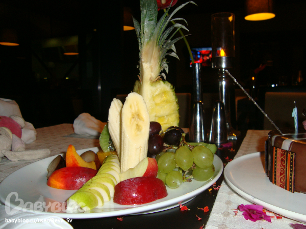 На территории всего шесть ресторанов: мексиканский, турецкий, итальянский, дальневосточный, стейк-бар и рыбный. Рыбный находится на пляже, на втором этаже пляжного бара. Очень красивый Дальневосточный, там суши, морепродукты и все стилизовано на японский манер. Зашли в итальянский, он находится в бизнес-крыле – не очень понравилось расположение. В итоге выбрали стейк-бар для празднования моего 30-летия J. Резервировать нужно либо через администраторов, либо через терминал самообслуживания. 10 евро с человека. Туманный ресторан (стейк) внутри очень красивый, открытая кухня, где видно кто, что и как готовит. Нам принесли пять деревянных подносов, на которых лежало около десяти видов различных сырых стейков на выбор. Винная карта тоже разнообразная от 15 до 300 евро за бутылку. Выбранные стейки приготовили замечательно. Перед ними принесли салаты. Особого внимания заслуживает салат из креветок. Блюдо, на нем салфетка из ананаса, на ней половинка кокоса, а в кокосе креветки. Очень необычно и красиво, а главное – вкусно. Официанты почти не отходят от вас, при этом все очень ненавязчиво. Подливается вино в бокалы, меняется сервировка и обновляются напитки. Бесконечно приятным было и то, что персонал знал о моем Дне Рождения, и от ресторана преподнесли небольшой роскошный фирменный тортик со свечками и бенгальскими огнями, бутылку французского шампанского и корзинку нарезанных фруктов. Вечер прошел более чем приятно и красиво. Обязательно посетите хоть один ресторан ля-карт в Su Sessi. Стоимость бронирования и прочего запишут на ваш номер. Оплата при выезде на ресепшене в любой валюте.